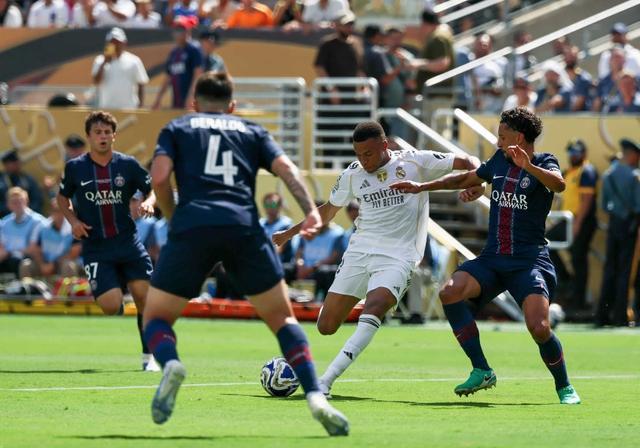 皇马0-4惨败给巴黎,从两队的强度、节奏上看,这不是一个档次上的对决。巴黎全攻全守,前场三叉戟登贝莱、杜埃、克瓦拉茨赫利亚跑动积极,时刻都在压迫上抢。在巴黎强大的整体压迫下,皇马中卫劳尔-阿森西奥、吕迪格犯下低级失误。皇马三叉戟的其中2人,姆巴佩、维尼修斯则显得懒散。